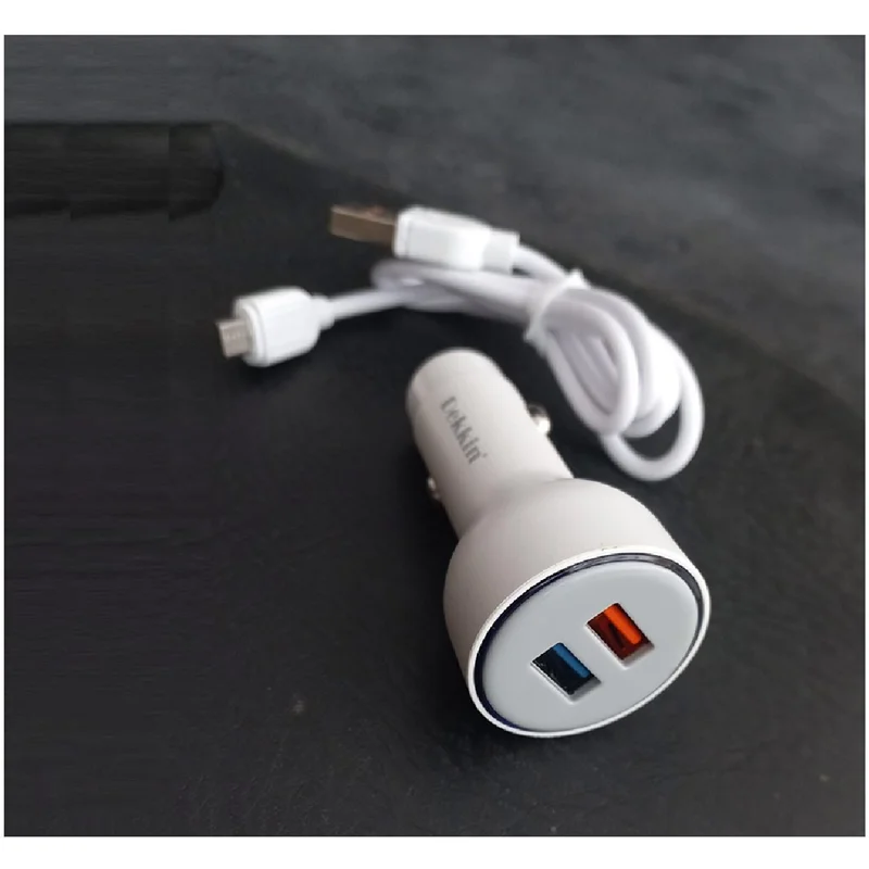 شارژر فندکی دو پورت Dekkin مدل DK-603 همراه با کابل میکرو USB